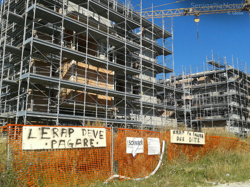 Senigallia, edili non pagati occupano il cantiere alla Cesanella – FOTO
