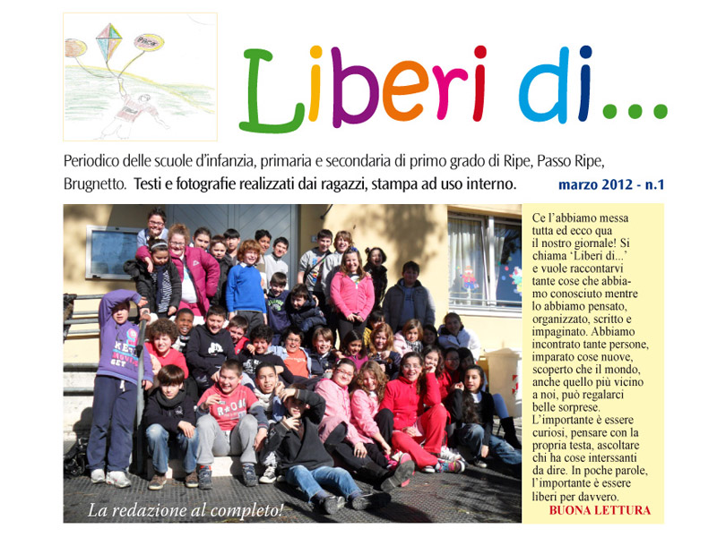 ‘Liberi di…‘ è la colorata testata del giornale scolastico pensato e scritto dagli alunni della Scuola Primaria ‘Palazzi’ di Passo Ripe e che verrà presentato ufficialmente giovedì 29 marzo prossimo, alle 20.30, presso il Centro Polifunzionale di Ripe.