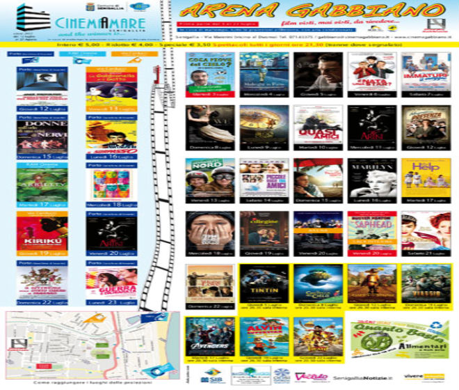 Film di recente uscita, come il pluripremiato “The artist“. Ma anche grandi classici del passato come “Qualcuno volò sul nido del cuculo” o “Il dittatore dello stato libero di Bananas“. Il cinema a Senigallia si allarga sempre di più coinvolgendo spazi cittadini inusuali: ritorna infatti per l’edizione 2012 il “CinemAmare“, rassegna già collaudata lo scorso anno, che da giovedì 12 luglio si prenderà il suo posto da protagonista nelle serate senigalliesi.