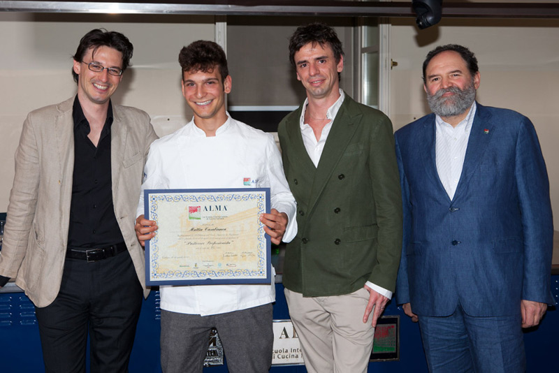 Alla cerimonia di consegna dei diplomi sono intervenuti Riccardo Carelli, amministratore delegato di ALMA, lo chef Luciano Tona, direttore didattico, lo chef Matteo Berti, responsabile del Corso Superiore di Pasticceria, e Antonio Ranieri, chef docente.