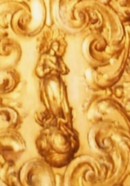 La Madonna, alta circa 30/40 centimetri, era posta nel paleotto dell’altare di San Bonifazio e risale alla fine del ‘500 quando venne edificata la Cappellina della Concezione, oggi dell’Addolorata. Era già venerata ad Ostra prima ancora che Papa Pio IX esprimesse il dogma di fede dopo il 1850 in circa.