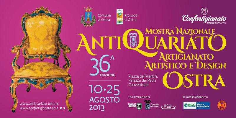 Ancora alcuni giorni per visitare l’edizione 2013 della Mostra Nazionale di Antiquariato, Artigianato Artistico e Design di Ostra, organizzata dalla Pro Loco, Comune di Ostra e dalla Confartigianato di Ancona e con il sostegno della Banca di Credito Cooperativo di Ostra e Morro d’Alba, da parecchi anni vicina alla manifestazione in qualità di sponsor principale dell’evento.