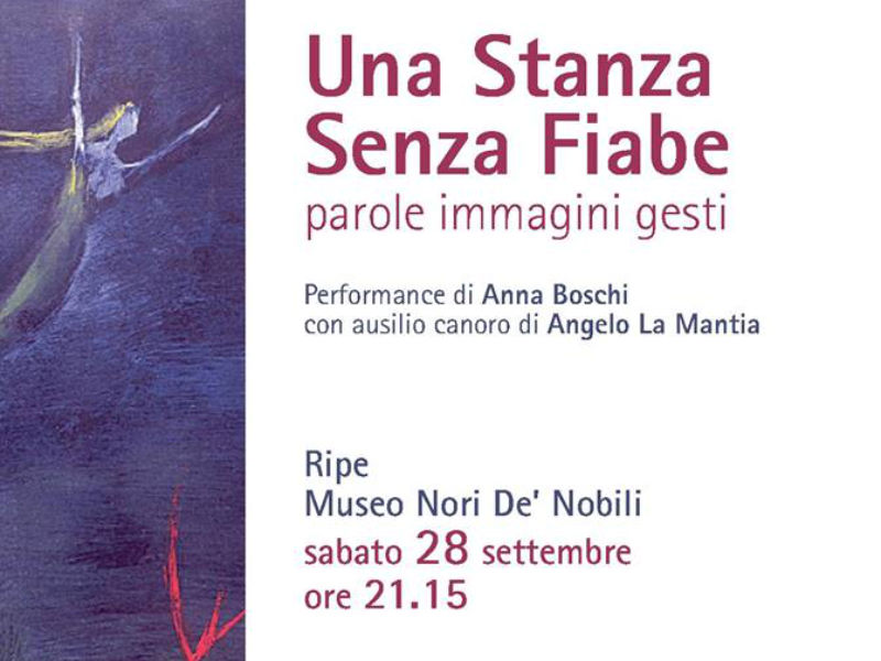 Attraverso parole, immagine e gesti, il percorso “immaginato” di Nori De’ Nobili, nei trenta anni di permanenza in manicomio, verrà rappresentato da Anna Boschi con l’ausilio di Angelo La Mantia. La performance raccoglie e comunica lo spirito di una pittrice, la quale ha lottato lungamente e coraggiosamente contro i suoi fantasmi, oltre che contro una società non ancora pronta ad accettarla.