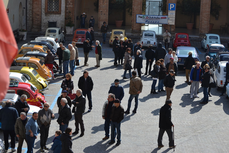 Domenica 9 marzo si è svolta ad Arcevia, con grande successo, la “carica” delle Fiat 500 d’epoca. Piazza Garibaldi è stata invasa da queste splendide autovetture guidate da persone provenienti da tutte le Marche e anche da fuori regione. Leonardo Felicetti, il presidente della Pro Loco, organizzatrice dell’evento, insieme al Sindaco di Arcevia Andrea Bomprezzi, ha accolto i partecipanti e il responsabile della provincia di Ancona e di PesaroUrbino del FIAT 500 CLUB ITALIA, ricevuto nella sala consiliare.