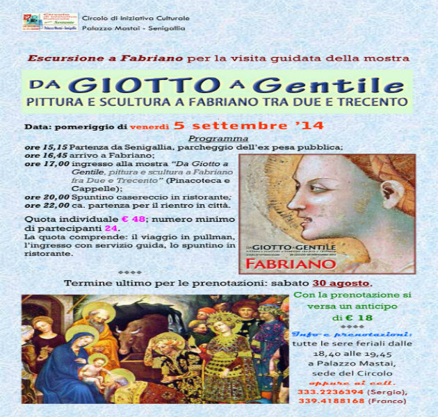 ore 17,00 ingresso alla mostra “Da Giotto a Gentile, pittura e scultura a Fabriano fra Due e Trecento”;