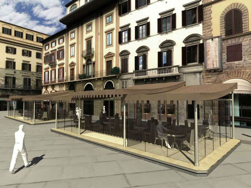 Perché ostinarsi a non voler accettare che i dehors non sono una “disgrazia”, ma un arricchimento a livello urbano ed un modo per permettere di lavorare un pochino di più per qualcuno? Ma vi darebbe così fastidio vedere dei bei gazebo con la gente dentro in autunno ed inverno? Piazza della Signoria a Firenze li ha permessi e sono molto belli e chi ha dato il permesso? Guarda caso il vostro amico “selfie-man” Renzi, che fino a poco tempo fa era il Sindaco della bella Firenze. Vi alleghiamo le foto dei dehors chiusi in modo da farvi meglio comprendere che quello è l’unico sistema che aiuta e tutela un onesto commerciante, non le ridicole altezze di un metro e mezzo che avete deliberato. Da notare anche che oltre al freddo c’è, ed è visibile a tutti, il problema “piccioni”. Non è certo carino per chi si siede ad un tavolino di un bar o di un ristorante avere la “compagnia” del suddetto volatile. Il dehors chiuso risolverebbe anche questo problema.