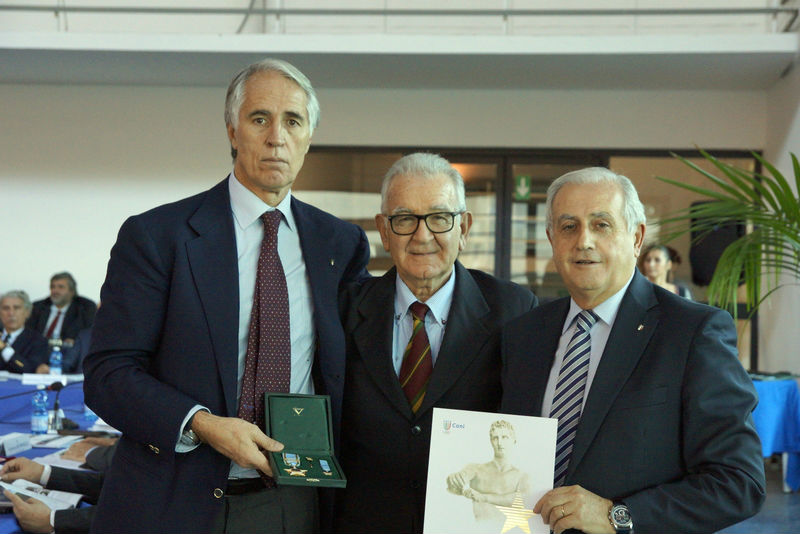 Dino Berti premiato dal Presidente del CONI Giovanni Malagò con la Stella d’Oro al merito sportivo.