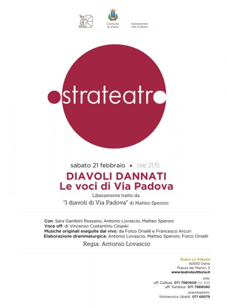 Sabato prossimo, 21 febbraio, sul palco del teatro “La Vittoria” alle 21:15, torna la qualità espressiva della rassegna “Pigmenti” a cura del gruppo di O.strateatro con “Diavoli dannati. Le voci di Via Padova“, già in scena lo scorso dicembre al teatro Verdi di Milano.