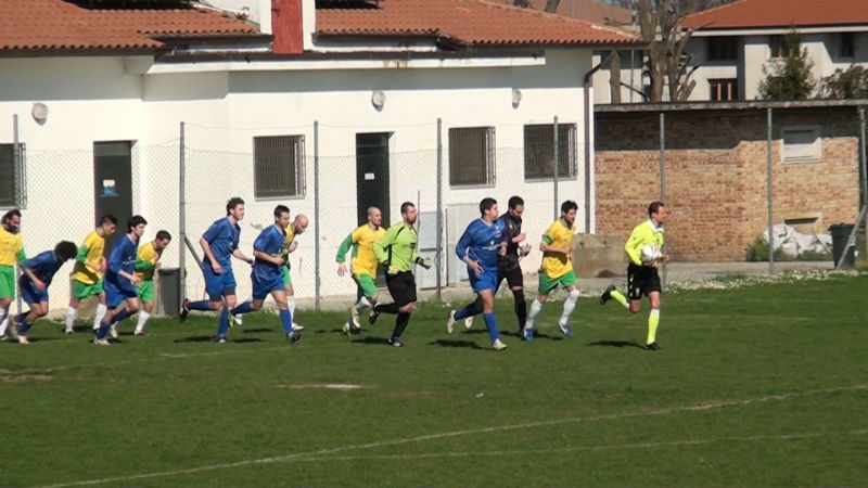 I “Leoni di Ostra Vetere” scendono in campo sabato 28 marzo al “Comunale” con il solito 4-4-2 e l’insolita divisa gialloverde, contro un Corinaldo senza più obiettivi. Inizio gara soporifero: il più attivo è Marinosci, che ci prova con un paio di conclusioni da fuori senza fortuna e un colpo di testa nell’area piccola che esce oltre la traversa da ottima posizione. Il Corinaldo lascia campo e iniziativa ai padroni di casa, che creano al 41′ la più nitida palla-gol del primo tempo, ma capitan Sartini angola troppo di sinistro su splendida imbeccata di Stablum in azione di contropiede.