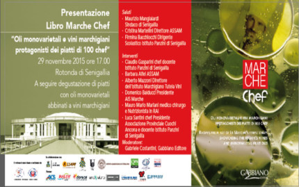 Sarà presentata domenica 29 novembre 2015 alle ore 17.00 presso la Rotonda a Mare di Senigallia la pubblicazione Marche Chef “Oli monovarietali e vini marchigiani protagonisti dei piatti di 100 chef”.