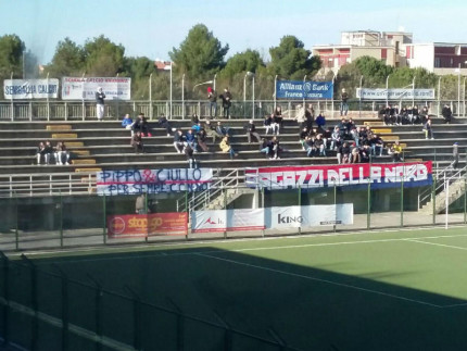 La curva dello stadio Bianchelli, con lo striscione dei Ragazzi della Nord