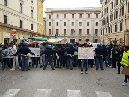 Un centinaio di migranti ha manifestato nel pomeriggio di giovedì 6 aprile ad Ancona, bloccando il centro storico dorico (via Gramsci, via XXIX settembre, corso Stamira) per raggiungere pacificamente la Prefettura.