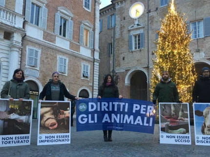 Il flash mob dell'associazione "Essere Animali" si è svolto anche a Senigallia in piazza Roma