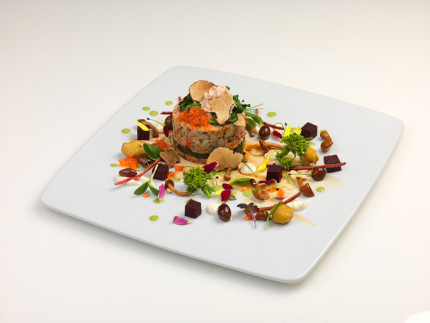 La ricetta che pubblichiamo è proposta dalla chef Massimiliano Corvella: il piatto è Trota alla Rossini rivisitato: una trota a filetto aromatizzata con pane aromatico, speck tostato e pecorino su biscotto ai porcini con insalata invernale composta da funghi, castagne, cime di rapa, barbabietole rosse, spinaci saltati, crema di burrata, crema di carote aromatiche e crema di cime di rape. Spuma di foie gras, scaglie di tartufo nero e uova di trota.
