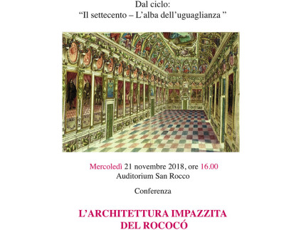 L’appuntamento si terrà come al solito alle ore 16,00 presso l’Auditorium San Rocco ed è aperto a tutti gratuitamente. Questa volta l’argomento del noto storico ed archeologo dott. Leandro Sperduti sarà: “L’architettura impazzita del Rococò”.