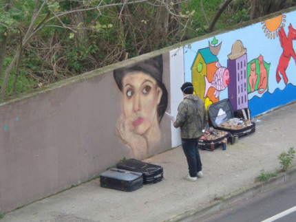 Qui vediamo il quarantenne writer nativo di Corinaldo mentre sta realizzando – proprio in questi giorni – la sua nuova opera, in via Cellini.