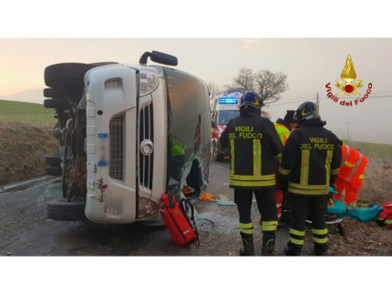 Sassoferrato, pulmino adibito al trasporto scolastico si ribalta –FOTO