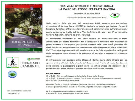 L’itinerario, di circa 7 chilometri e dal moderato dislivello, ci consentirà di ammirare ville storiche e chiese rurali, la Valle del Fosso e dei Prati di Baviera (zona Scapezzano e Roncitelli).