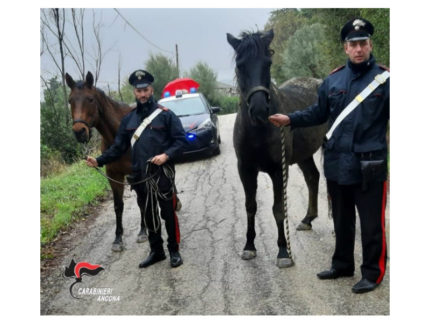 Nella mattina del 12 novembre i Carabinieri della Compagnia di Senigallia, insieme a quelli della Stazione Forestale, sono intervenuti in località San Silvestro, dove era stata segnalata la presenza di due cavalli liberi in strada.