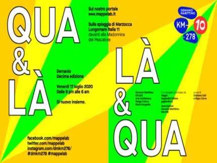 La notte delle arti è un grande palinsesto che si dispiega il prossimo venerdì 17 luglio 2020, seguendo un doppio binario che dal tramonto porterà all’alba, contemporaneamente nella piattaforma digitale www.mappelab.it e nella fisicità della spiaggia di Marzocca. Racconterà la storia di questi dieci anni per tematismi e preveggenze, ne ricorderà protagonisti, temi e parole chiave, momenti salienti, e accoglierà nel Programma 2020 i contributi di curatela, nuovi ospiti con cui proseguire una riflessione collettiva che traccerà percorsi culturali e simbolici tra le due sponde.