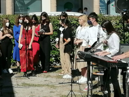 Un ringraziamento sentito va a tutti i docenti e agli alunni che hanno partecipato, in modo particolare alle prof.sse Isabella Antonietti e Oretta Olivieri, alla prof.ssa Loredana Spadoni, l’animatore digitale del nostro Liceo, ai docenti Angelo Gentili e Giovanni Frulla che hanno preparato con dedizione e professionalità i musicisti e i cantanti del gruppo musicale che si è esibito dal vivo.