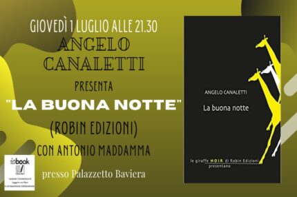Giovedì 1 luglio alle 21.30 Angelo Canaletti presenterà “La buona notte” (edito da Robin) presso il Palazzetto Baviera di Senigallia; dialogherà con l’autore Antonio Maddamma, poeta e scrittore.