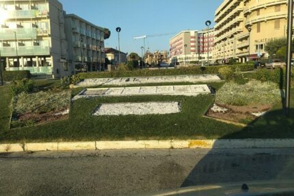 Danni al prato di fronte alla Rotonda che aggiorna giornalmente sulla data.