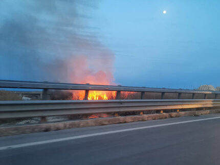Erano alte e ben visibili, dopo le ore 18 di mercoledì 16 marzo, le fiamme dell’incendio che stava divampando in prossimità della foce del fiume Cesano, a Senigallia, circoscritte tra i ponti della Strada Statale 16 e della ferrovia.