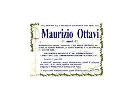 Ieri, alle ore 12, è mancato all’affetto dei suoi cari Maurizio Ottavi di anni 61.