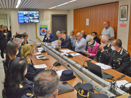 Erano presenti il presidente della Regione, Francesco Acquaroli, l’assessore alla Protezione civile, Stefano Aguzzi, il responsabile della Protezione civile regionale, Stefano Stefoni che ha coordinato gli interventi dei vari rappresentanti istituzionali coinvolti: Prefetture, Province, Comuni, Anas, Ferrovie, Forze dell’ordine, Vigili del Fuoco, Sistema operativo delle emergenze.