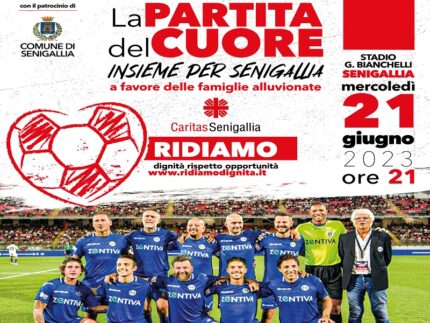 Nuova data da segnare sul calendario: la Partita del cuore – Insieme per Senigallia si terrà la sera di mercoledì 21 giugno alle ore 21 allo stadio Goffredo Bianchelli di Senigallia. Sul prato del Bianchelli vedremo la Nazionale italiana cantanti sfidarsi contro il Charity Team Senigallia, di nuovo a favore della popolazione alluvionata grazie ai progetti di Caritas Senigallia, che da sempre ha offerto il suo aiuto concreto nell’emergenza.