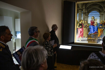 La Dott.ssa Caldari, curatrice dell’evento, prima di accompagnare i visitatori al taglio del nastro, ha offerto interessanti chiavi di lettura per apprezzare al meglio la Pala di Senigallia e ha illustrato i criteri con i quali sono state scelte le altre opere, pittoriche e scultoree, di grande pregio e profondamente legate al territorio, che anticipano il dipinto del Perugino.