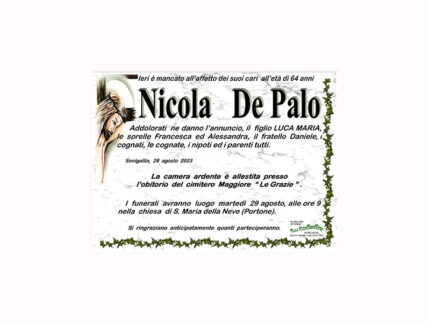 Ieri è mancato all’affetto dei suoi cari all’età di 64 anni Nicola De Palo.