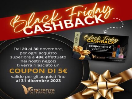 Dal 20 al 30 novembre, per ogni acquisto superiore ai 49 euro effettuato nei negozi Veressenze ti verrà rilasciato un coupon di 5 euro valido per gli acquisti fino al 31 dicembre 2023!