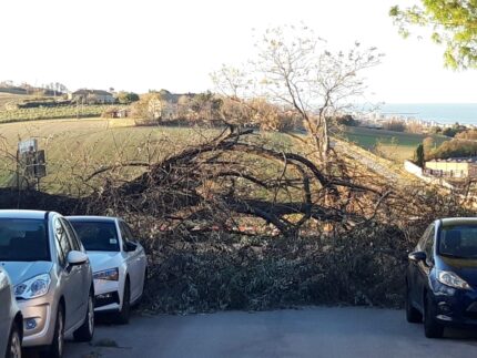 “Dalle 7.00 di sabato mattina 2 dicembre, le famiglie di Strada del Cavallo – Portone erano senza corrente elettrica, come la maggior parte della città a sud di Senigallia, per la caduta di alberi che hanno tranciato di netto i cavi dell’alta tensione in buona parte della città.