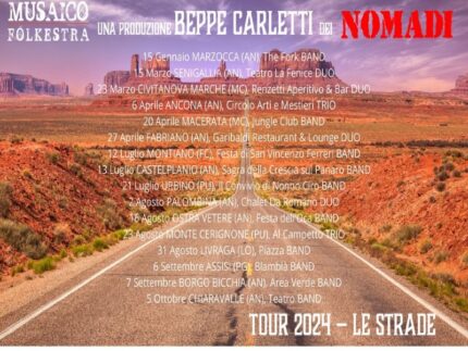 Un tour che toccherà diverse città marchigiane ma non solo quello dei Musaico Folkestra, il gruppo senigalliese che ruota attorno a Marco Petrucci e Francesco Ferrandi, autori di diverse canzoni per i Nomadi, anche recenti.