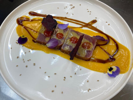 La tataki è pronta, vi consigliamo di accompagnarla con verdure saltate con soia, creme a preferenza (crema di patate e di peperoni sono le nostre preferite!), salsa o polpa di frutta esotica e non come il mango.