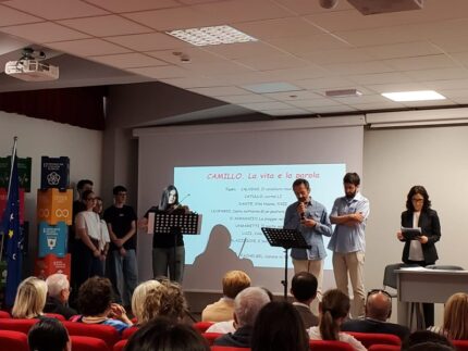 Ma non potevamo parlare di Camillo senza i suoi amati classici e a questo hanno pensato Mauro Pierfederici, Anna Annibali e Alessio Messersì, che hanno interpretato alcune poesie degli autori a lui più cari; nella lettura sono stati coinvolti gli studenti della 2Csc e della 5Bsc.