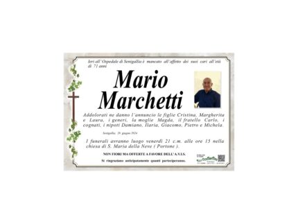 Ieri all’ospedale di Senigallia è mancato all’affetto dei suoi cari all’età di 71 anni Mario Marchetti.