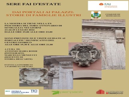 Senigallia, relativi ai più illustri palazzi del centro storico e nelle più svariate forme architettoniche: dal Rinascimento al Barocco e al Neoclassico. Alle ore 19,30 e alle ore 21,00 si prevedono due visite guidate ad alcuni dei Portali più rappresentativi, a cura dell’arch. Marcello Mengucci, docente di Storia dell’Arte che, oltre a descrivere i Portali, narrerà le singolari storie degli illustri proprietari dei Palazzi, ricostruendo così in parte la storia economica, politica, sociale della nostra Senigallia.