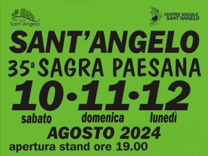 A Sant’Angelo ritorna la 35esima Sagra Paesana, sabato 10, domenica 11 e lunedì 12 agosto. Gli stand gastronomici apriranno ogni sera alle ore 19, con servizio al tavolo.