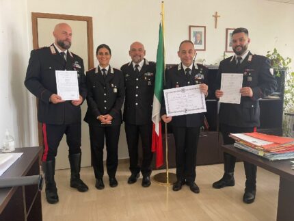 Oltre all’Ufficiale hanno ricevuto l’Encomio Semplice del Comandate della Legione Marche, Gen.B. Salvatore Cagnazzo, il Vice Brig. Simone La Bruto e l’App.Sc.q.s. Matteo Sonnante, rispettivamente Capo Equipaggio e autista dell’Aliquota Radiomobile del NORM della Compagnia di Senigallia per il tempestivo intervento effettuato lo scorso mese di aprile intervenendo presso l’Ospedale di Senigallia in soccorso di una paziente che minacciava il suicidio.