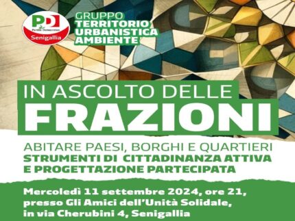 Inizieremo mercoledì 11 settembre ore 21:00 con l’incontro “IN ASCOLTO DELLE FRAZIONI, abitare borghi e quartieri”, presso la sede degli Amici dell’Unità Solidale. Tutte le informazioni sul sito www.pdsenigallia.it e sui nostri canali social.