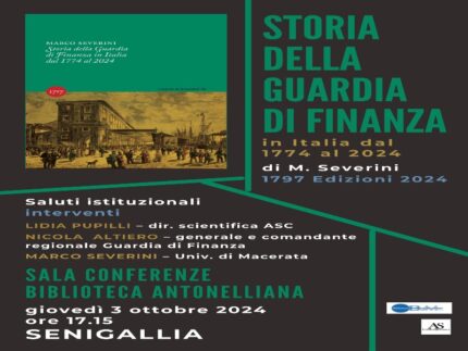 È il Corpo militare più antico della storia italiana e giovedì 3 ottobre viene presentato nella Sala Conferenze della Biblioteca “Antonelliana” di Senigallia il libro “Storia della Guardia di Finanza in Italia 1774-2024” (1797 edizioni, 2024, pp. 160) del prof. Marco Severini (Università di Macerata) che ricostruisce i 250 anni delle Fiamme Gialle.