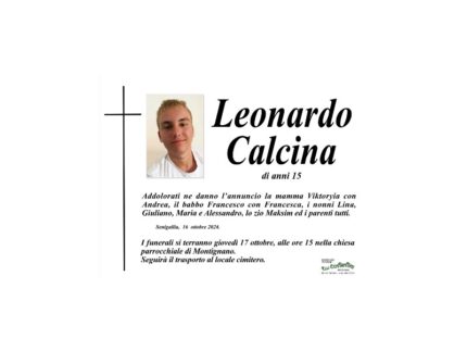 Alle ore 15 del 17 ottobre 2024 l’ultimo saluto a Leonardo Calcina