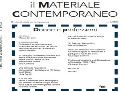 Vengono poi proposti la ricostruzione di Sara Carbone su Maria Padula (1915-1987), intellettuale impegnata e voce tra le più interessanti della Lucania del secondo Novecento, pittrice e scrittrice che ha interpretato con le sue opere la difficile realtà italiana del secondo dopoguerra, aderendo alla corrente del neorealismo; il saggio di Lidia Pupilli che ha ripercorso le tappe del difficile percorso attraverso cui le italiane sono riuscite, negli anni Sessanta, ad accedere alla carriera diplomatica, abbattendo non pochi ostacoli normativi; il lavoro di Roberto Ferretti sul critico e teorico del cinema Luigi Chiarini (1900-1975), figura che, tra fascismo e post-fascismo, ha quasi continuativamente dominato, con contraddizioni tutt’altro che risolte, la cultura cinematografica italiana; Roberto Polastri si è invece occupato della struttura, cioè dell’organizzazione del materiale, adottata da Calvino nel libro “Le città invisibili”, mettendola a confronto con procedimenti compositivi ben noti ai musicisti (valga il nome di Bach), ma meno prevedibili in letteratura, ritrovando per questa via alcuni risultati critici raggiunti dai primi lettori di Calvino, come Cases, Pasolini e Pavese; segue una riflessione di Mariano Ragusa sul libro recente che ha riacceso i riflettori sull’attivista sudafricano anti-apartheid Stephen Bantu Biko; chiudono questo numero, prima delle recensioni e degli abstract, due lavori di Giuseppe Santoni e Giovanni Ricciotti rispettivamente relativi al tenente Carlo De Lellis di origine altoatesina, inedita figura di carabiniere e partigiano nel Senigalliese, e alla vicenda ventennale dell’Istituto d’Istruzione e di Educazione, un collegio-convitto, fondato a Fermo e trasferito, non senza polemiche, a Senigallia agli inizi del Novecento che nel 1908 aveva 170 convittori.