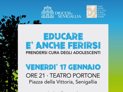 Il Servizio diocesano per la tutela dei minori e delle persone vulnerabili promuove per venerdì 17 gennaio 2025, ore 21.00, al teatro ‘Portone’ di Senigallia – Piazzale della Vittoria un incontro sul tema “Educare è anche ferirsi. Prendersi cura degli adolescenti”, con gli interventi di Luisa Roncari, psicologa psicoterapeuta e Stefania Crema, avvocata, specialista in criminologia.