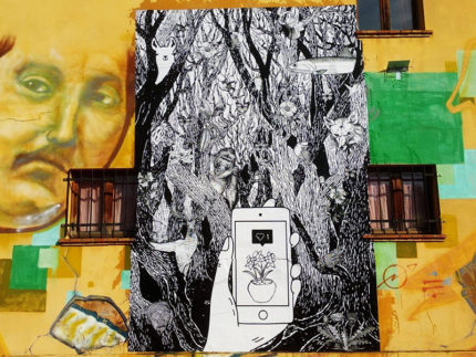 È questo il messaggio del pop artist senigalliese Giacomo Giovannetti che ha realizzato quest’opera di grandi dimensioni per la prima giornata del Breach Festival: chi governa e come gestiamo la nostra attenzione?