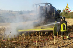 Mietitrebbia a fuoco nella campagna di Trecastelli
