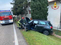 Sul posto è stato chiesto l’immediato intervento dei vigili del fuoco per liberare la donna dalle lamiere